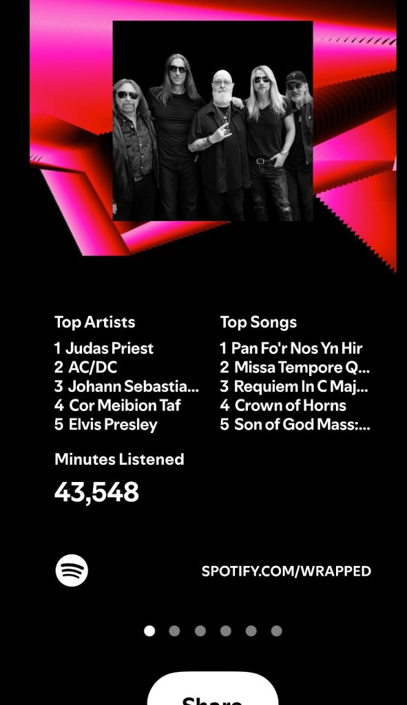Fel y gwelwch o’r llun isod o fy hoff ganeuon ac artistiaid ar Spotify, mae gennyf flas eang ac eclectic mewn cerddoriaeth: