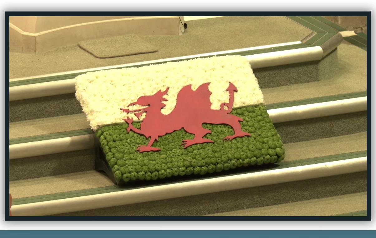 Braint fawr i Gôr Meibion Taf oedd derbyn gwahoddiad i gymryd rhan yng ngwasanaeth angladdol Terry Yorath yn Leeds ar 26 Ionawr. Bu farw cyn gapten a rheolwr tîm pêl-droed Cymru yn dilyn salwch byr yn gynharach yn y mis yn 75 oed. Bachgen o Gaerdydd oedd Terry ond ymgartrefodd yn Leeds yn ddyn ifanc er mwyn dilyn ei yrfa bêl-droed. Er hynny ni phallodd ei falchder o fod yn Gymro na’i ymrwymiad i Gymru. Cynrychiolodd ei wlad 59 o weithiau rhwng 1969 a 1981 cyn mynd ymlaen i reoli y tîm cenedlaethol rhwng 1988 a 1993. Roedd hi’n briodol felly mai côr meibion Cymraeg o Gaerdydd gafodd yr anrhydedd o gyflwyno’r eitemau cerddorol yn y gwasanaeth.