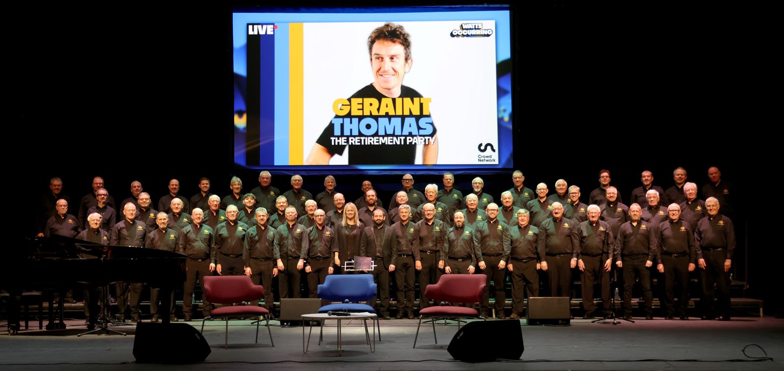 Côr Meibion Taf had the privilege of performing at Cardiff’s New Theatre as part of The Geraint Thomas Cycling Club podcast. The live podcast took place on Tuesday, 7 November 2023. The choir rehearsed hard for the evening and Geraint was invited to meet us and hear us for himself at Llandaff Rugby Club.